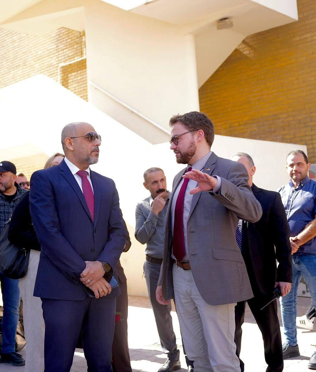 The Dean of the College of Languages, Professor Dr Ali Adnan Mashoush, and Professor Maisoon Ali Razouqi, Head of the German Language Department, oversaw the opening ceremony, with the attendance of Mr Magnus Obermann, Counsellor for Internal Political and Cultural Affairs at the German Embassy, along with his accompanying delegation. Also, a delegation from the Goethe-Institute, represented by the Institute’s Director, Mr Thomas and Mr Ghassan Al-Maamar, participated in the event in addition to several faculty members and students from the department. The guests, accompanied by the Dean, toured the German Language Department’s classrooms to observe the learning environment and student activities. The tour was followed by a meeting between the faculty members and the German delegation. The inauguration of the German Corner marks a new milestone in the cultural collaboration between the University of Baghdad and the German Embassy, with the goal of expanding scientific and linguistic communication and fostering mutual understanding between the Iraqi and German peoples.