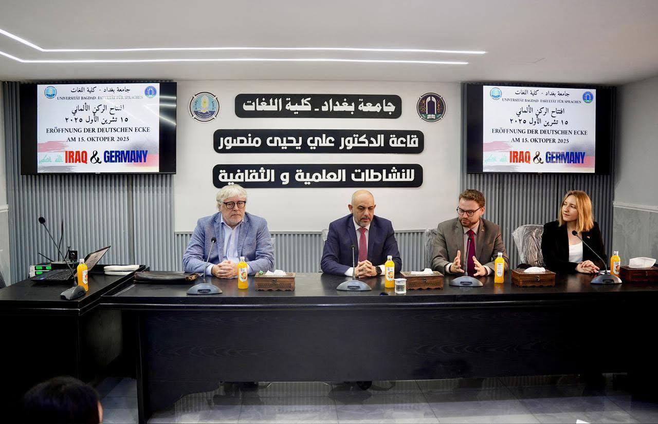 On Tuesday, October 15, 2025, the College of Languages at the University of Baghdad inaugurated the German Corner within the Department of German Language, in collaboration with the Cultural Attaché of the Embassy of the Federal Republic of Germany in Baghdad and the Goethe-Institut. This initiative aims to strengthen academic and cultural cooperation between both sides.